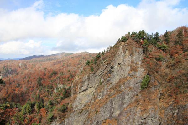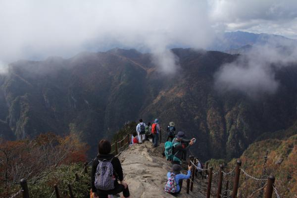 大蛇嵓からの眺めは圧巻!!昔来た時はガスで周りが見えず高感度もなかったのですが、赤、黄、黄緑様々に色付く木々が