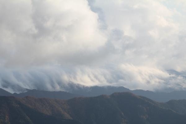 帰りの道中では山肌から流れる雲の滝が見られ幻想的な風景に見とれてしまいました。