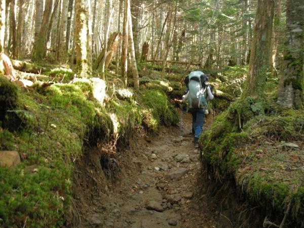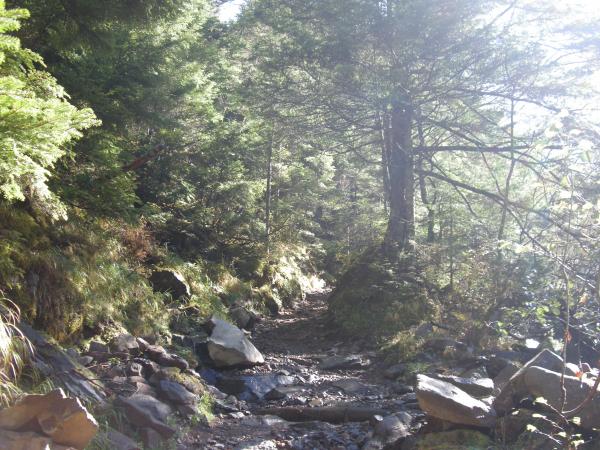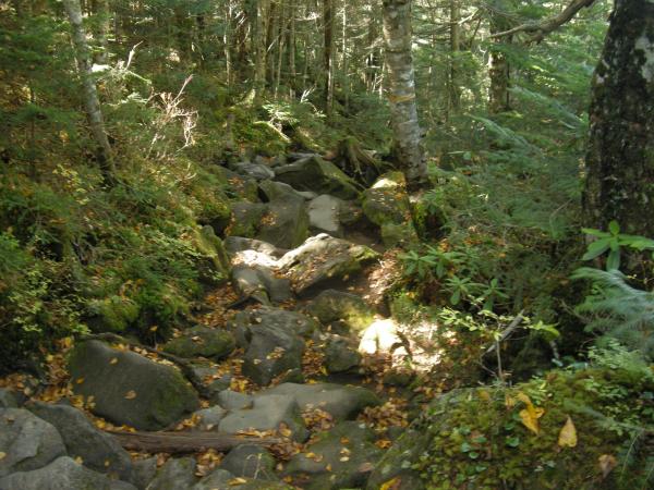 黒百合ヒュッテ~渋の湯間は、岩がごろごろ、落ち葉で滑り易いので慎重に。以外と時間がかかります。