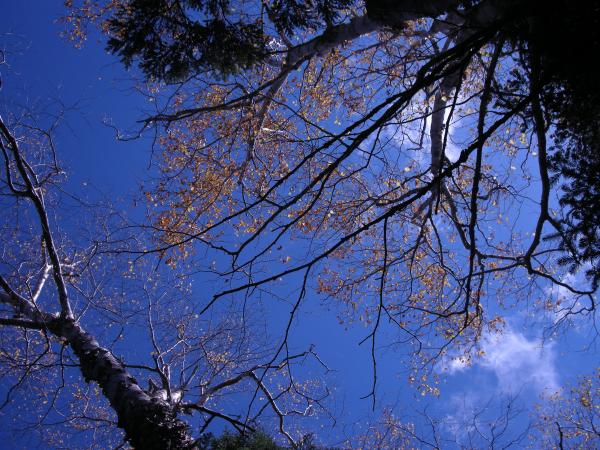 さくさくした落ち葉を音を鳴らしながら歩き、木々の間に見える青空を見ながら