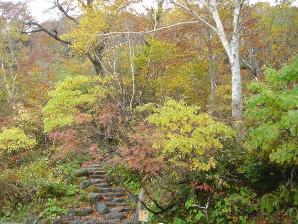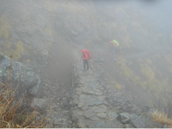 - 雨天のため足元の石段や落ち葉、木道など滑りやすく特にくだりは注意が必要。