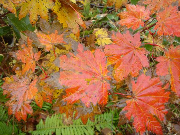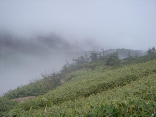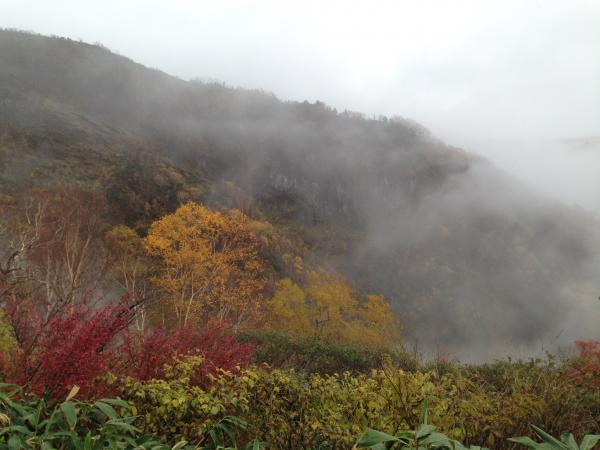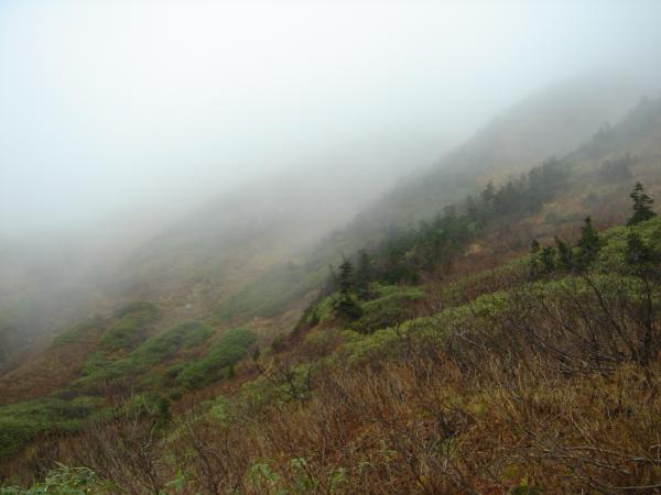 この期間、紅葉は標高1800m付近以下まで下っており、それ以上は冬枯れとなっていました。雨に濡れた紅葉も色鮮やかで美しいものでした。ときおりガスの晴れ間に見える風景も素晴らしく、天候が悪いにもかかわらず意外と楽しめた山行でした。ただ、山頂部は初日二日目ともにガスで真っ白でした。残念。