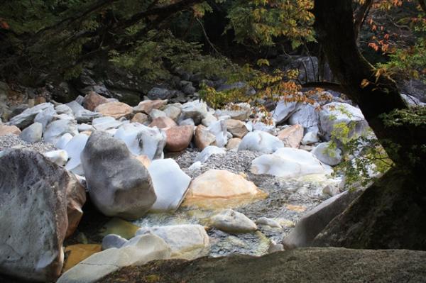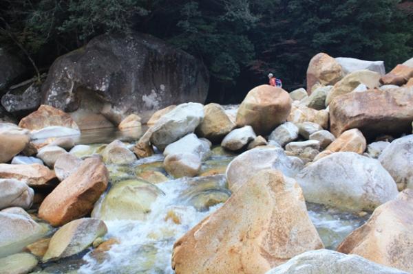 先ず川を渡渉するのに石へジャンプしたりしました。増水しているときは、渡渉ができないので、状況で判断してください。