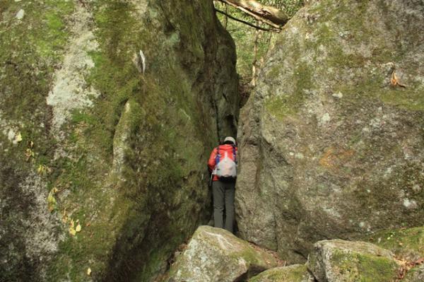 - 大崩山登山口(40分)大崩山荘(30分)ワク塚コース分岐(90分)袖ダキ(90分)上ワク塚(60分)大崩山山頂(30分)坊主尾根分岐(50分)小積ダキ(120分)大崩山荘(30分)大崩山登山口