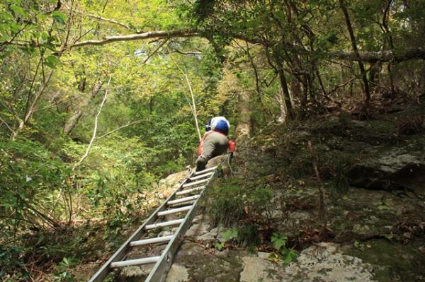 ●「坊主尾根」は、ハシゴ、ロープの連続でハードです。