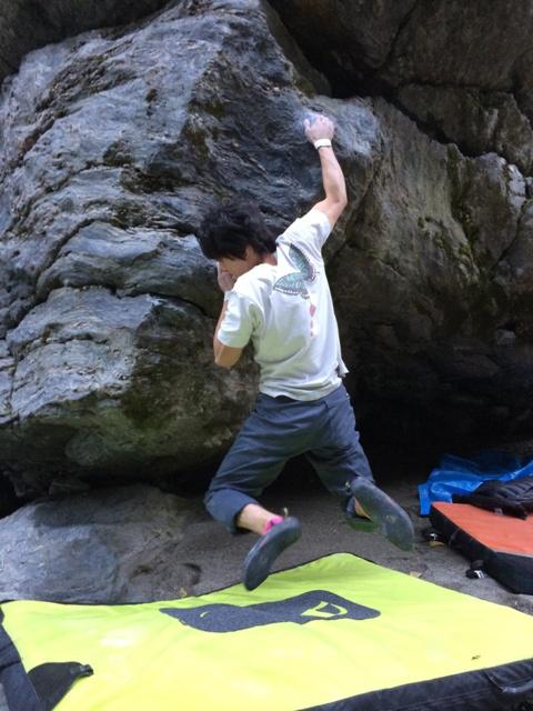 ⑤ボルダーらしく手足を大きく使ってバシバシ動く感じで、私は明らかにパワー不足でだめでした。