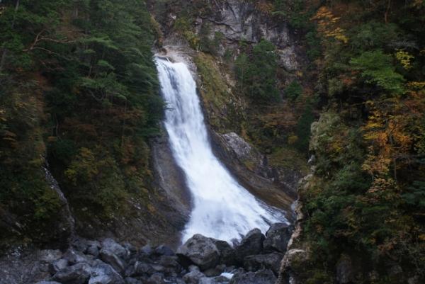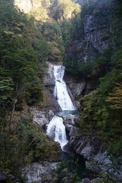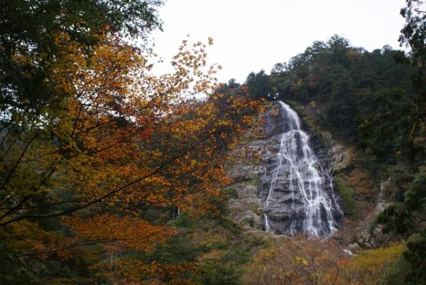 2時間ほど歩くと千尋滝に到着。滝口が高く、天空から落ちてくるような滝の姿に見とれます。