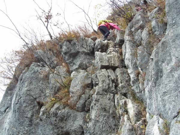 ③魚尾道峠に降りる最後の鎖場。ここも足場が作ってありますが、本当に垂直です。あとは降りた後の登山道も油断できません。
