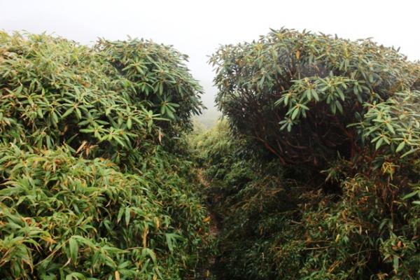 焼野三又路~永田岳はシャクナゲの宝庫で6月は大変綺麗なんだと感じました。ルートは陥没している箇所があり、クマザサではなくヤクザサさんの葉が狭い登山路を覆い完全に体を濡らされていただきました。根が固く手をつくと痛いです。