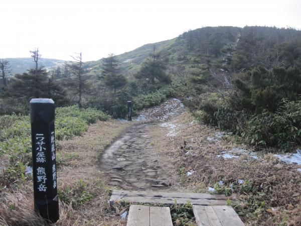 - 地蔵尊周辺は観光客も多くいてまだ雪はありませんでしたが、そこから地蔵山頂へ行く登山道から先は初雪が溶けずにうっすら残っていて、ぐちゃぐちゃになっていました。危険箇所なし。岩がごろごろしていて、熊野岳からワサ小屋跡までの下りは滑りやすかったです。