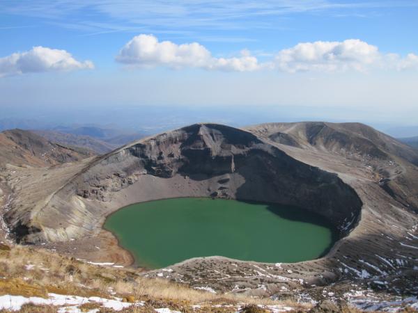 お釜を初めて見ました。稜線からのぞき込んだら、お釜でした。