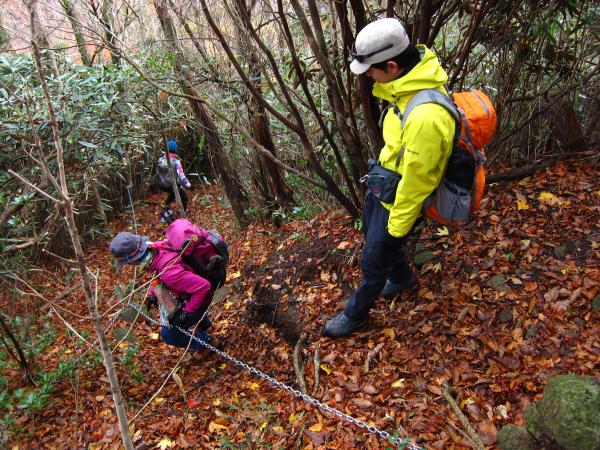 なかなか勾配のあるアップダウンがあり、岩場あり、