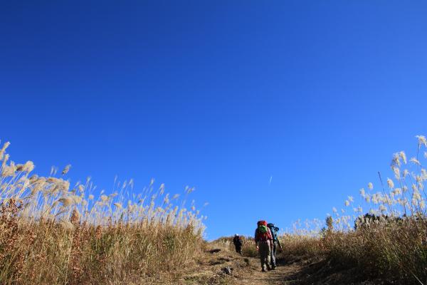 気持ちのよい木漏れ日の中をワイワイ楽しく歩きました( ´∀`)山頂付近のススキはピークを迎えていて背の高いススキが一面に広がっていました☆
