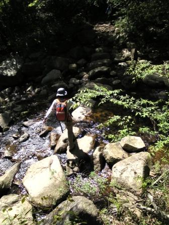 - カスケードバレイは少し急登ですが、おしゃべり(?)しながら登れるコース。本当は山寺尾根の点線コースを行きたかったですが通行止めでした。穂高湖までは誰にも会わなかったのに、いろんな人がランチをしていました。飛石伝いがほぼ20回あることから二十飛と称した「トエンティクロス」は、今は20回もありませんが楽しめるコースです。