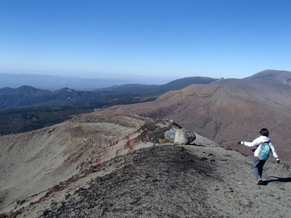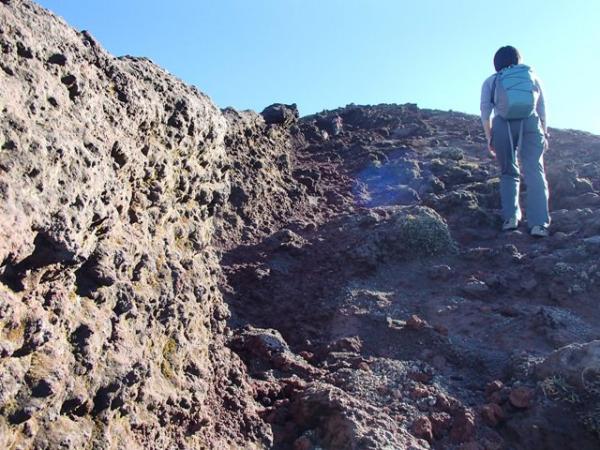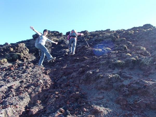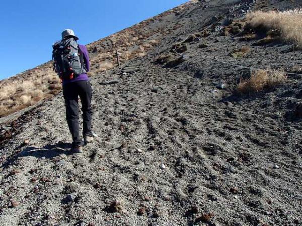 - 赤茶けた火山礫と軽石の歩きにくい登山道になります。