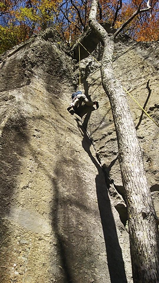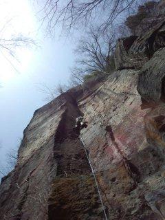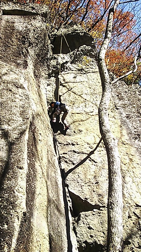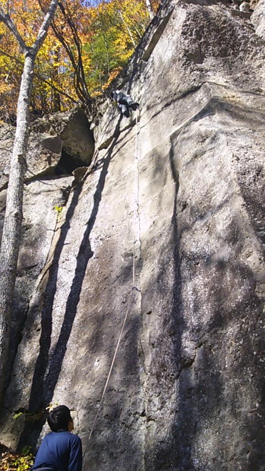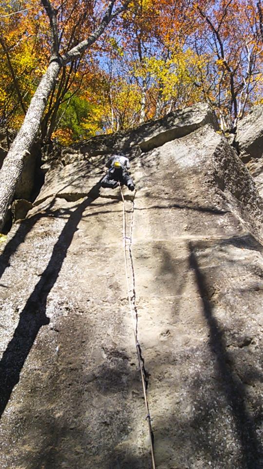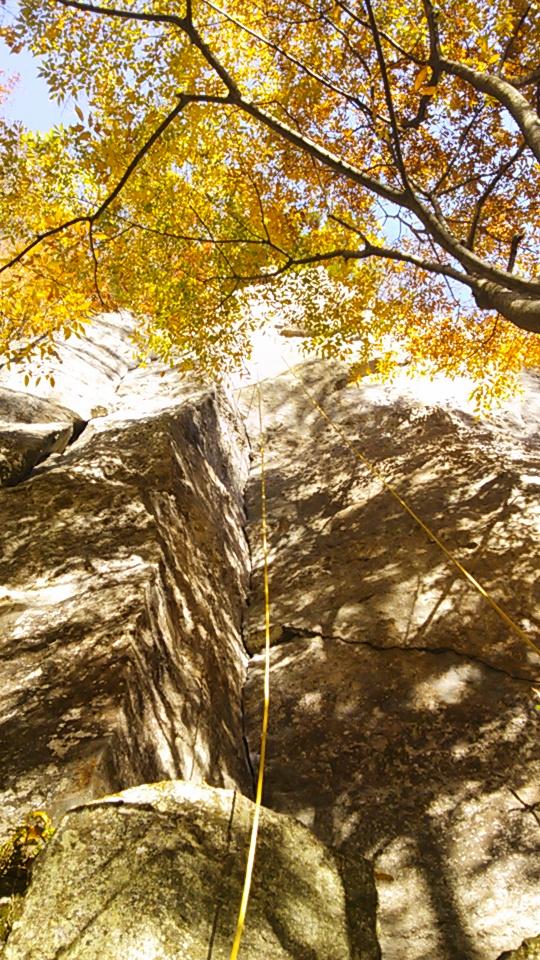 ルート上部がやや前傾したフィンガークラックで核心部は短いです。