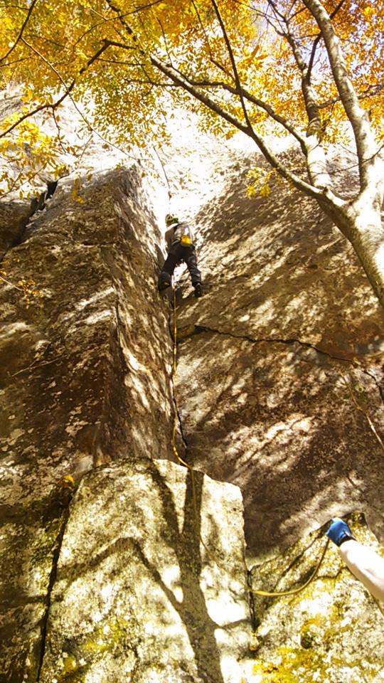 ガイド検定でお世話になった友人が登られていないクラックを大掃除していました。