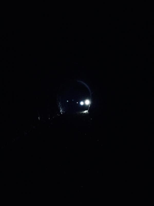 - 夏の台風の影響でしょうか、一部崩落箇所がありましたが、通過に支障はありません。トンネルの通過にはヘッドライトが必要です。