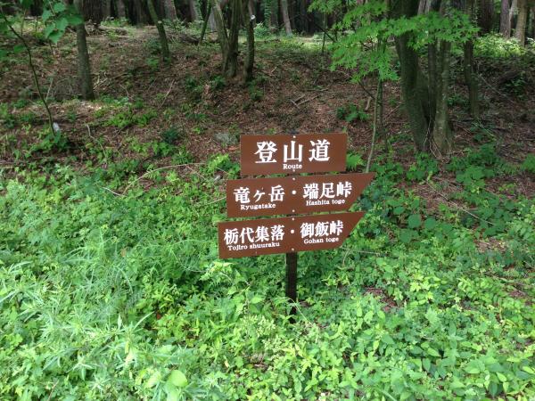 - 端足峠入口→(50分)→端足峠→(30分)→竜ヶ岳→(20分)→登山口ゲート→(40分)→端足峠