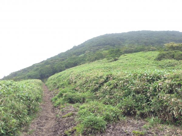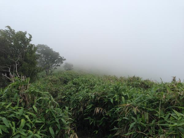 湿度が高く、頂上の笹が結露で濡れていて、ウェアはびしょ濡れでした。