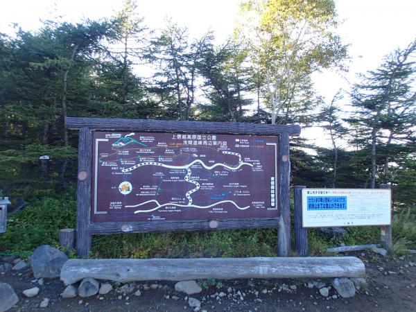- 高峰高原ホテル付近駐車場(車坂峠)中コース(70分)黒斑山(60分)前掛山登山口よりすぐ標高2180m付近(45分)前掛山(65分)湯ノ平口分岐(85分)高峰高原ホテル付近駐車場・中コースにて(車坂峠)