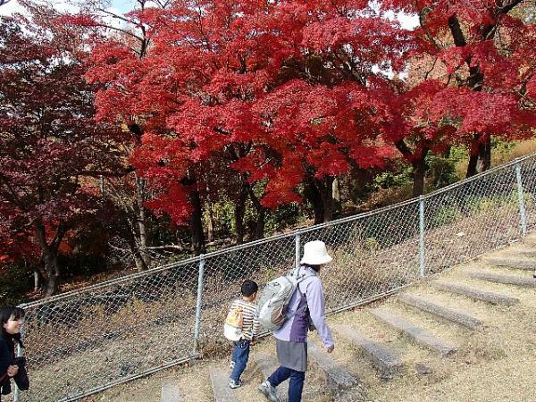 山頂ではドングリを拾って鹿にあげる楽しみ?も。