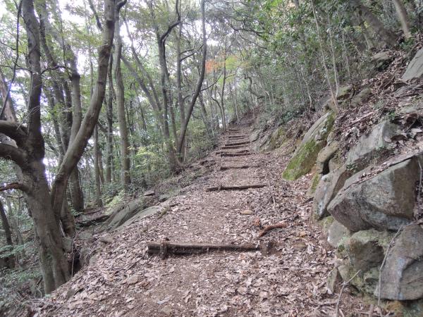 展望台より上は杉山。登山道は整備されて登りやすい。
