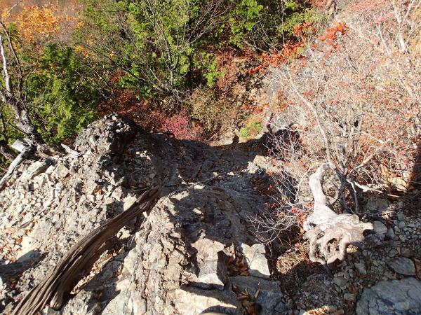 山と高原地図では破線ではなく、一般ルートになっていますが、正直一般向けのルートではないレベルだと思いました。臨む時はヘルメット必須!のルートです。