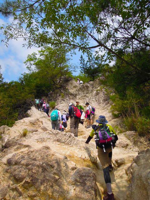 頂上までは行かず東お多福山からバスで帰りましたが、変化に富んだコースで楽しめたと思います。