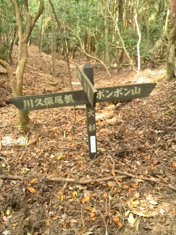 川久保からポンポン山方面には林道からのルート、沢筋のルートと尾根道からのルートと3ルートがあり、沢筋ルートが一番多く使われていると思います。