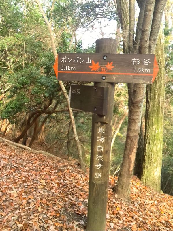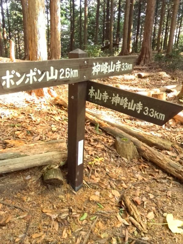 - 川久保バス停→55分→大杉→10分→釈迦岳→20分→ポンポン山→35分→本山寺→20分→神峰山寺→10分→原立石バス停