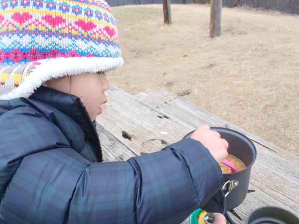 寒い中、一緒にパスタを作り、山ランチを堪能しました♪