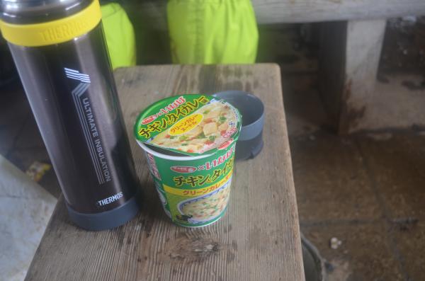 山頂からの展望はまったくないので、すぐに藤原山荘に戻り、ご飯を食べて駆け足で下山しました。