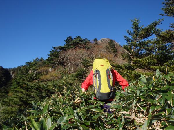 東稜コースは踏み跡は比較的明瞭ですが、笹で足元が見えにくいところがあるので注意。