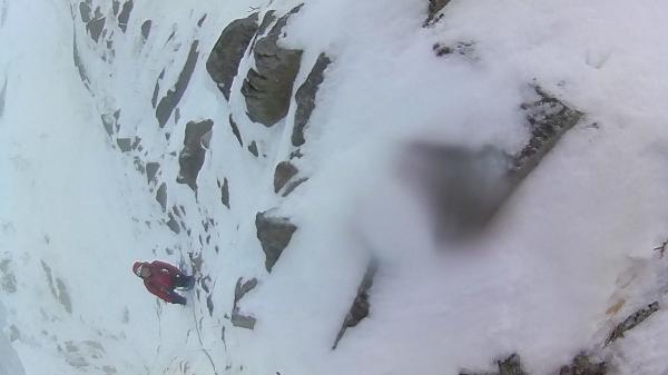 βルンゼはプロテクションを取れる場所が少なく、大きくランナウトする登攀が強いられるルートでした。ルンゼを抜けた先の核心以外は、それほど難しくないですが、核心部抜けはかなりの精神力が必要と感じました。