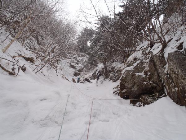 垂直入門とされるこの滝1・2Pがハイライトです。右岸にボルトも見られピッチを切るのにもよいです。