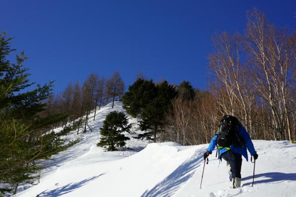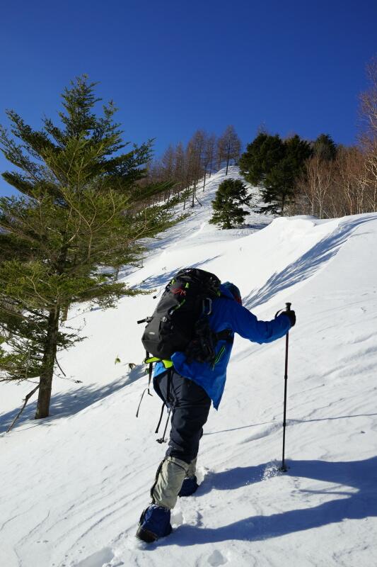 - 広河原登山口からすぐに川を渡ります。ここからしばらくは急傾斜地をジグザグに登りますが、下山時にはここで転倒をしないように注意してください。