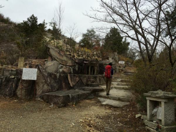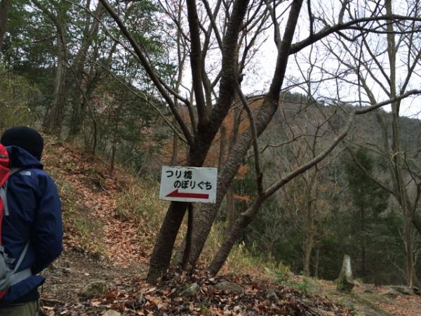 古法華自然公園駐車場から舗装路を少し歩き、吊り橋をくぐり左手に登山口があります。