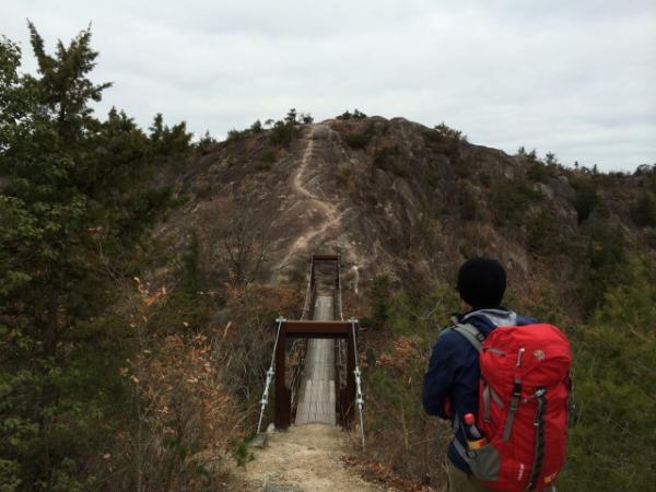 笠松山を後にし周遊コースで吊り橋まで戻り、善坊山を目指します。