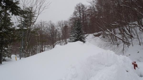 前日からの大雪と強風により自宅前と駐車場の除雪に1時間半を費やし、登山口に着いたのは9時過ぎ。雪は相変わらず降ってましたが、風はだいぶ弱まり、なんとか行けそう。