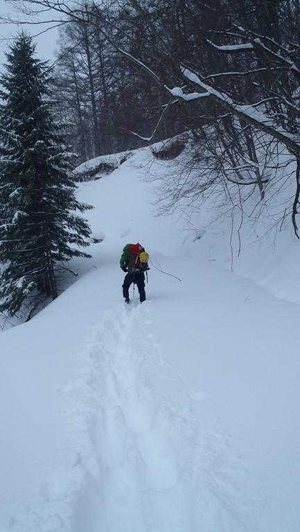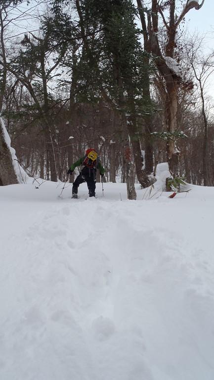 下りは頂上北側のコルから沢沿いに降りると早いです。(ほぼ夏道と同じ。)
