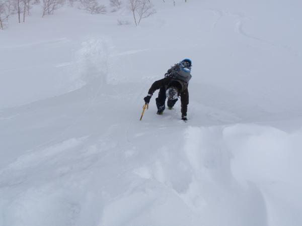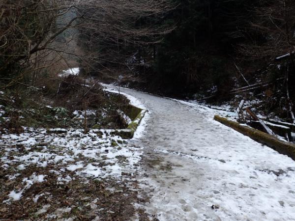 かなりカチコチの雪になっていて滑りやすくなっていました。