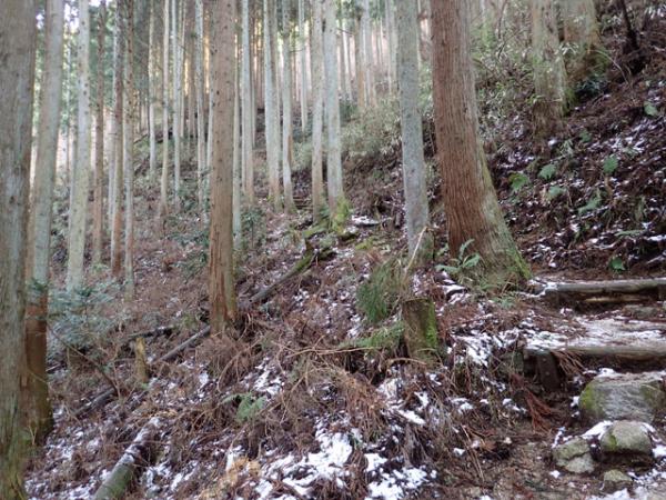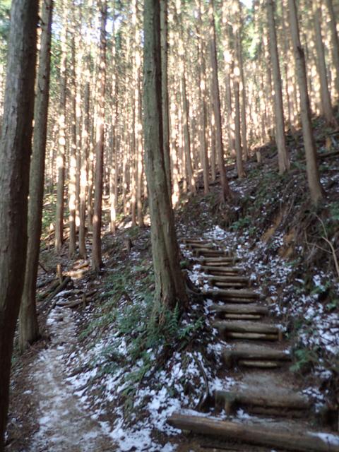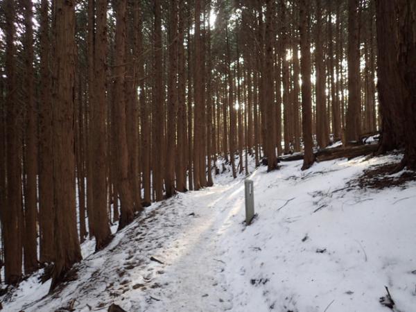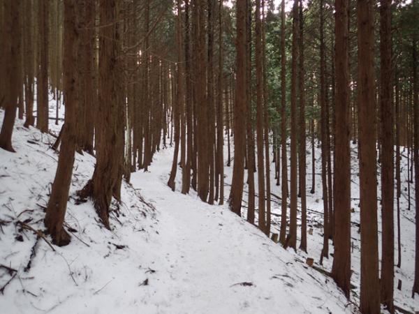 登りなれたダイヤモンドトレイル。最初の方は意外に雪が積もっておらず完全に溶けたのかと思ったのですが、林道を終わった後から少しづつ積もってきて、フカフカの雪を踏む感触が気持ち良かったです。