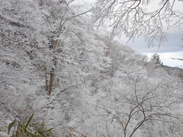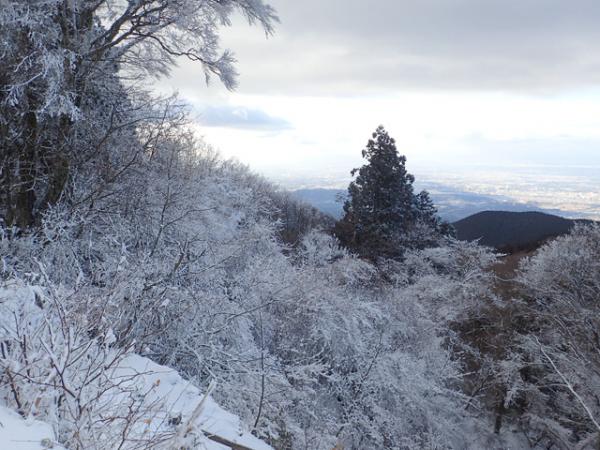 霧氷の成長が一番進んでいると思います。裏参道から大和葛城山方面の景色は一見の価値がありますよ。