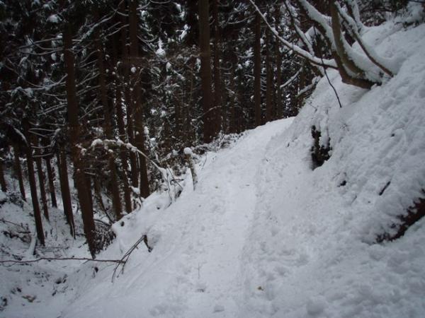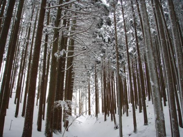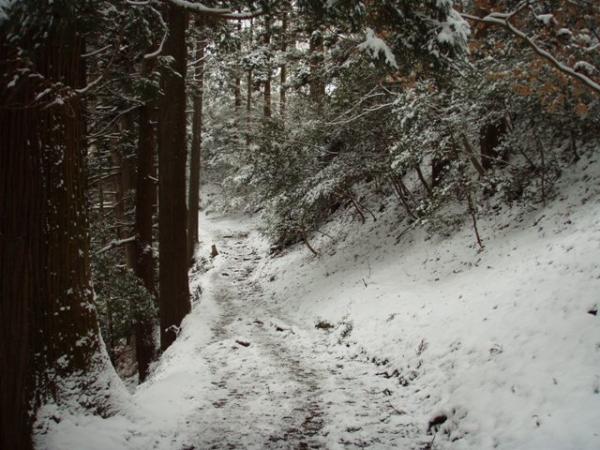 帰路は愛宕山に戻り、月輪寺への分岐から下って、大杉谷ルートを選択。第三ベンチぐらいまでは凍結しておりアイゼンが役立ちました。地蔵山から160分掛かって清滝に下山。
