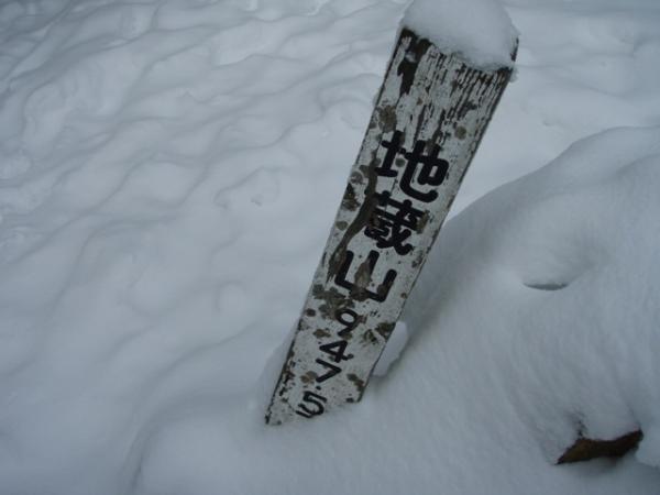 元の道に引き返して地蔵山へ向かう。竜ヶ岳への分岐を過ぎ、スキー場跡の標識からトレースを辿って、北上を開始。積雪は30~40cmぐらいでしたが、踏み跡の上はあまり沈まないのでワカンは使用せず。