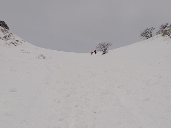 ここから荷物担いで滑るには膝とふくらはぎの体力が