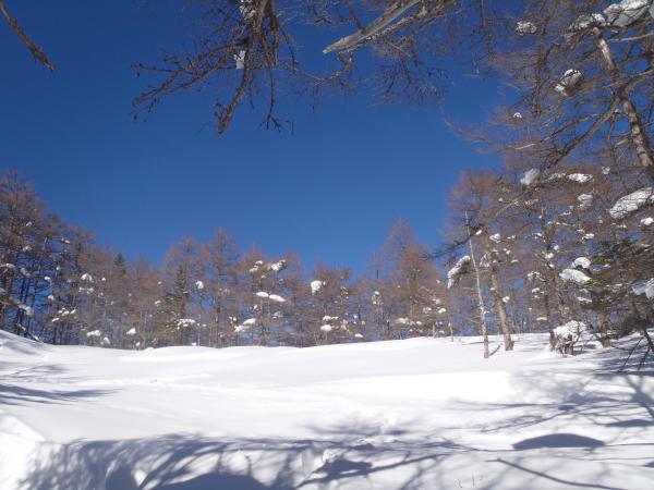 日のあたる所とそうでない所の雪質に注意して
