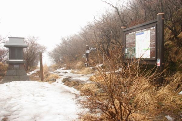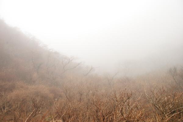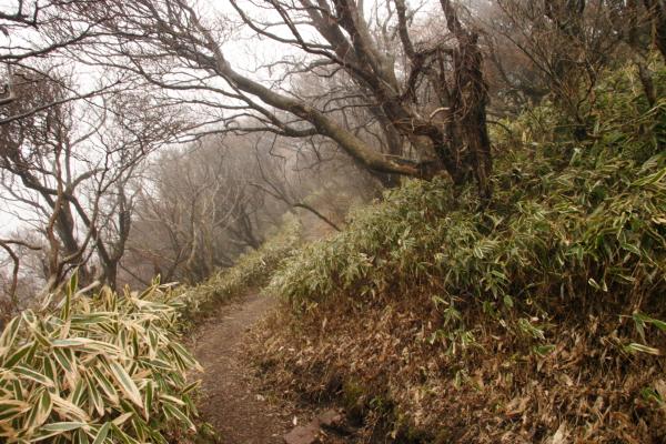 - 普賢岳山頂付近に少し雪があるくらいで期待していた霧氷は全くみれませんでした。