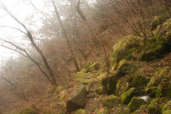 前日からの雨で全く景色が見れませんでした。仁田峠からの往復というメジャールートではなく普賢岳からほぼ海抜0Mまで下る縦走路は植生の変化などが楽しめるオススメのルートです。